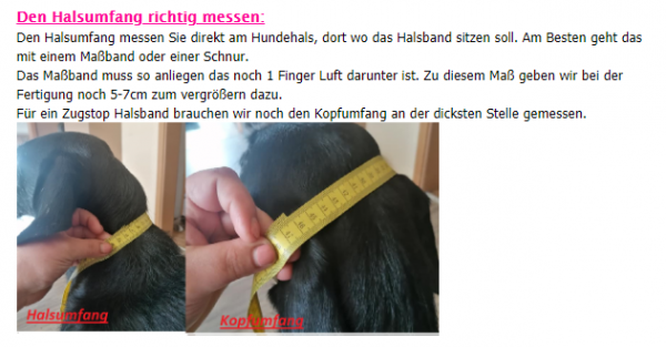 Schriftartnummer und den Halsumfang Ihres Hundes mit !