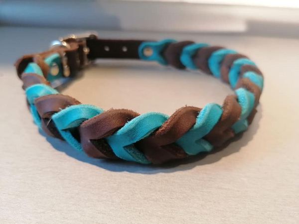 In Handarbeit geflochtenes Halsband , superweichem Fettleder. Das Halsband wird für Sie auf Maß angefertigt. Fettleder kann u.U. Abfärben! Bitte wählen Sie diese Farbe nur, wenn Sie dies nicht stört! Reklamationen diesbezüglich sind ausgeschlossen.)