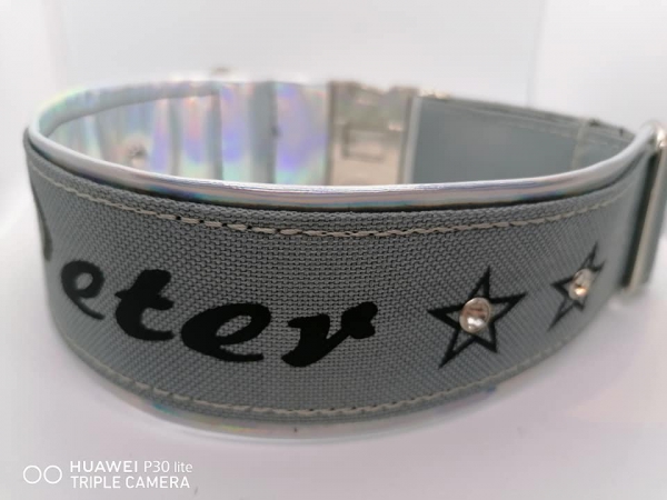 Bitte teilen Sie uns nach Ihrer Bestellung im Anmerkungsfenster den Hals-und Kopfumfang, sowie den Namen ( Wunschtext ) Ihres Hundes mit , sonst wird der Text wie abgebildet geliefert !