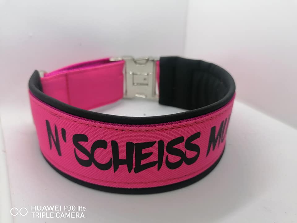Wunschtext Hundehalsband personalisiert schwarz/ pink mit Polsterung